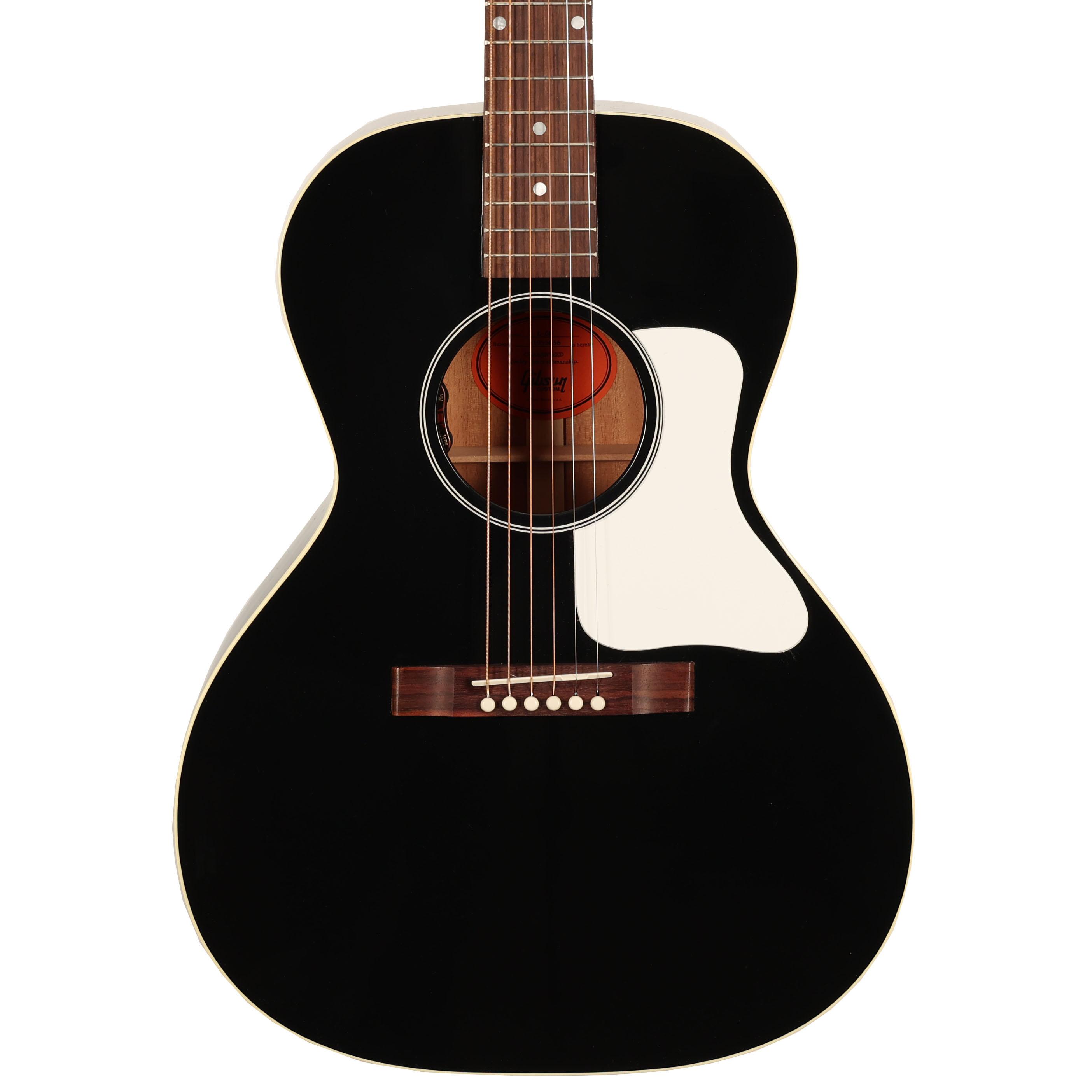 Beautifully crafted by the Gibson Custom Shop, this special run L-00 Standard elegantly finished in Ebony Black with White scratch plate perfectly captures the vibe of the ‘30s when this model was first introduced. Crafted using the classic combination of a solid Sitka Spruce top in combination with solid Mahogany back and sides, as well as a Mahogany neck with Rosewood fingerboard, this parlour-sized masterpiece sings. It's resonant and lively and has a weight and projection to the notes which way outsize its smaller body. Equally at home with finger picking as well as strumming, this electro acoustic guitar is a true acoustic workhorse. Its mini Grover Rotomatic tuners feel rock solid, and its provided Gibson hardshell is the perfect accompaniment for keeping this L-00 safe at home or on the road.